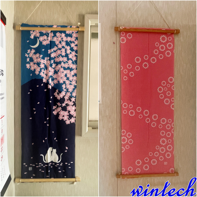 玄関先に飾っているのは、水野染工場さんの手ぬぐいです。