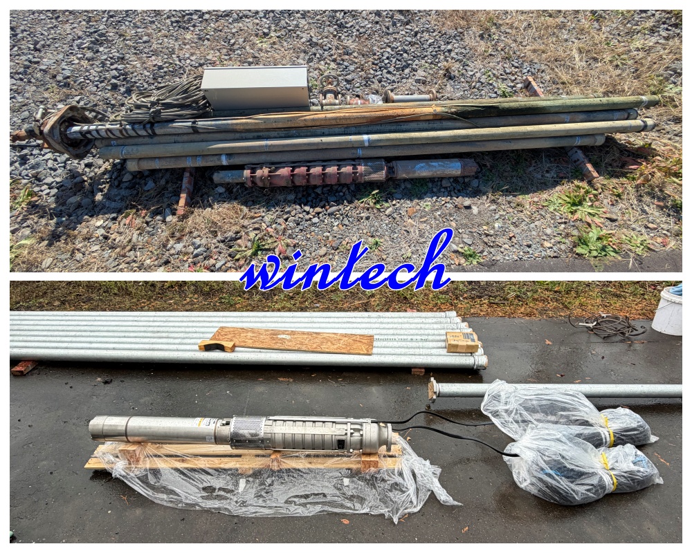 私の身長とほぼ同じ長さの水中ポンプ、重さは108kg。